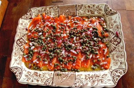 11/06/11 Wild Salmon Carpaccio with Red Onion Capers & EVOO.