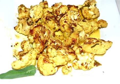 I never knew how delicious Cauliflower could be when all I recalled was crudites or a white mass boiled to the consistency of a mop. I realize now how a splash of Olive Oil & a roasting pan can perform magic. The more the Cauliflower is allowed to char the tastier it becomes.