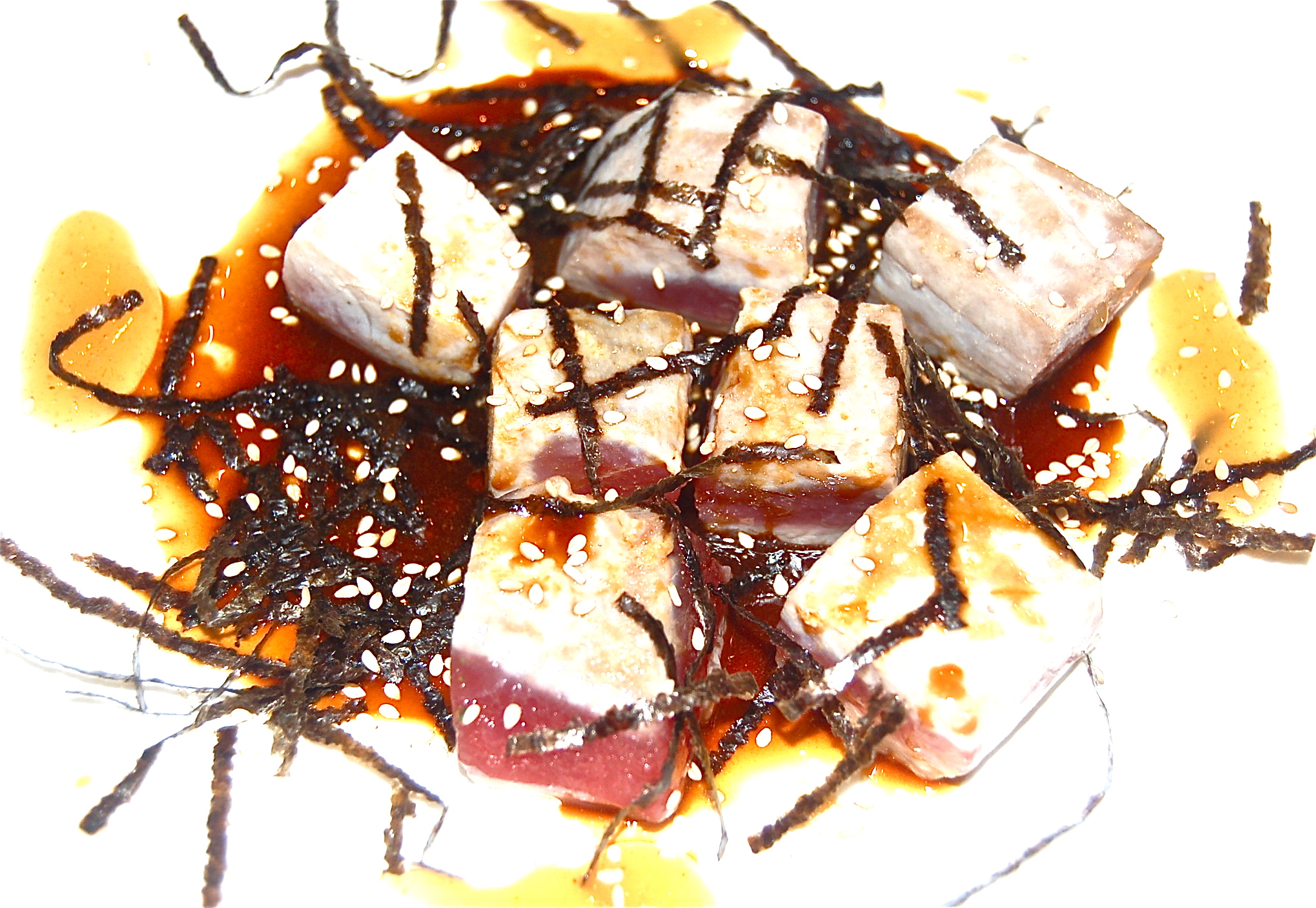 23/06/11 Yellowfin Tuna with Wasabi Soy Sauce & Batons of Nori & a Ginger Gla