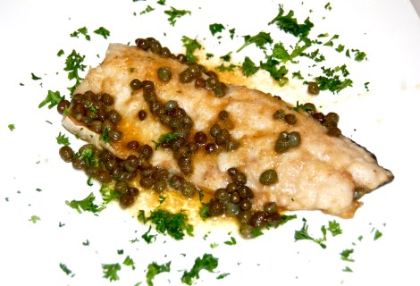 7. Plate the Trout & spoon the Butter Caper sauce on & around.