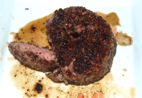 Whoever thought I’d write about a Burger? Well, this was a very special Burger. Beside top flight Chuck Beef, finely sliced Portobello Mushrooms and thinly sliced Provolone Cheese were mixed in. Other combinations could be, Bacon and Cheddar, or Onions and Swiss Cheese. Or use your imagination, but don’t run wild.