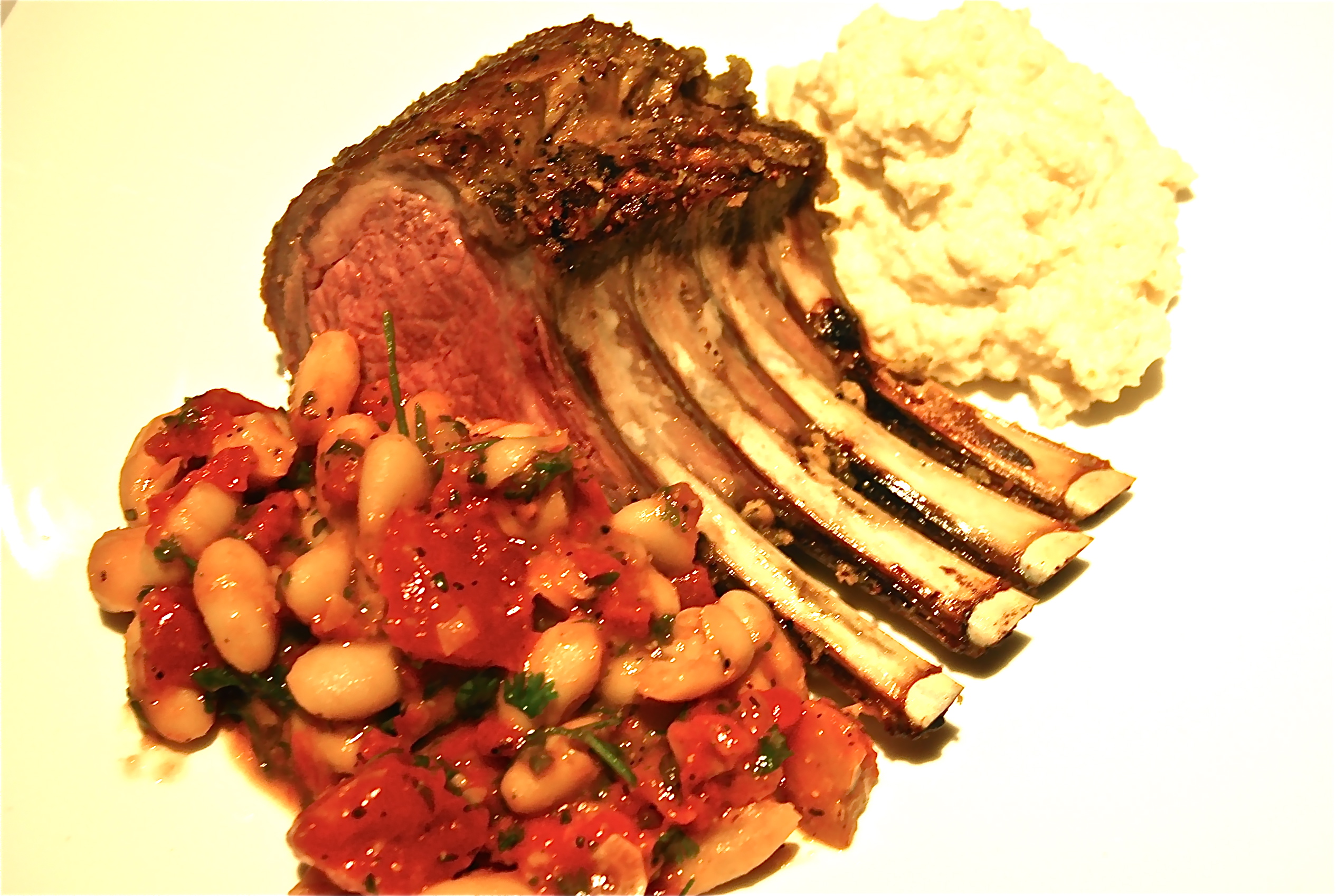 28/08/11 Rack of Lamb, Cannellini Beans and Tomatoes and Celeriac Puree