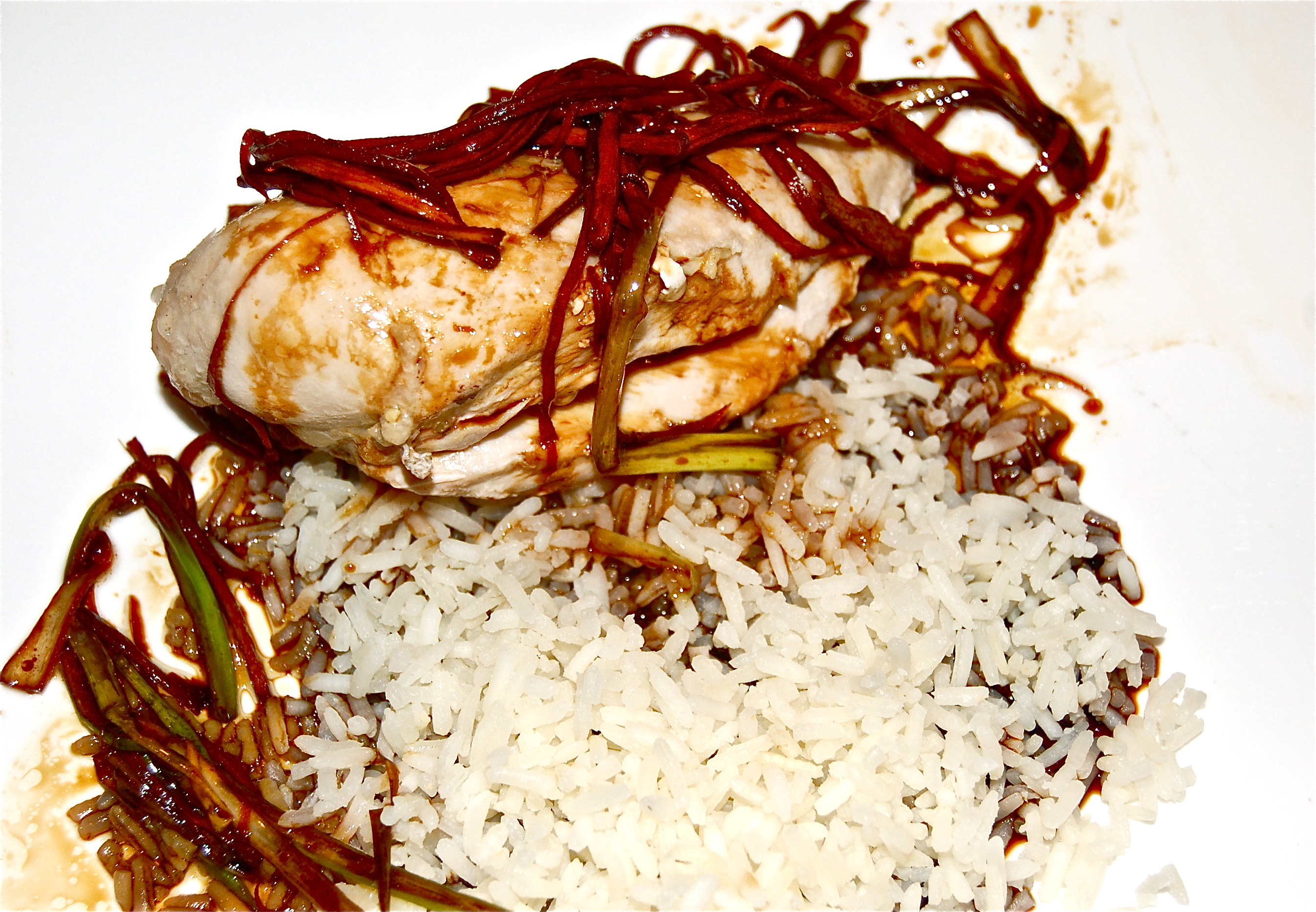 3. When the Chicken is done, drizzle it with the Soy-Ginger sauce & serve.