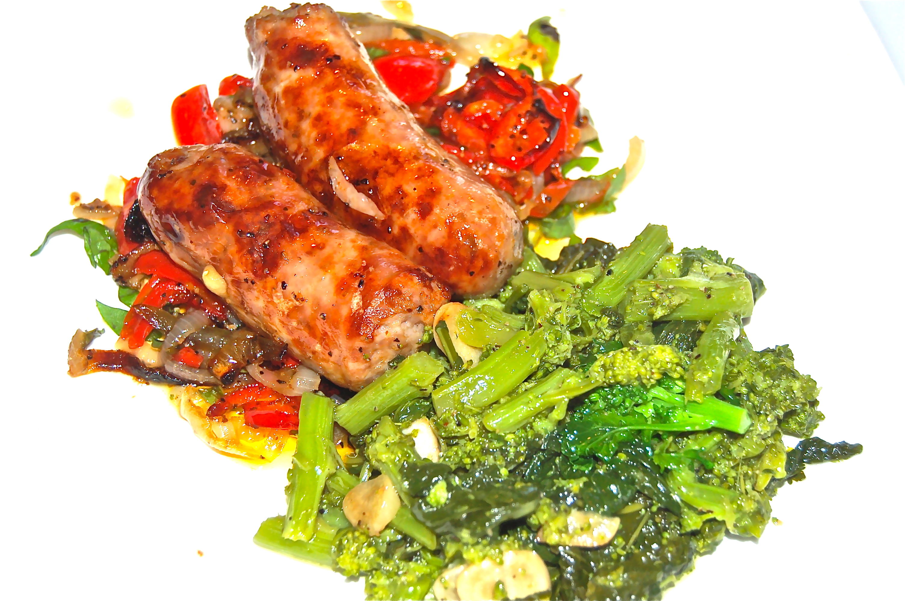 To say we love Italy and its diversity of foods would be an understatement. In the years of our visits, I thought I knew about Italian food. Actually, I knew very little. That is not to say that we didn’t dine across their spectrum of eateries. Lunches at a simple Trattoria or Taverna, dinner every evening at a fine Ristorante. And we ate very well. I had a friend who claimed “In Italy if you don’t see the cook in his undershirt, sweating over a blazing wood fire, grilling great scented meats, pass it by”. Sound advice. Last evening’s menu, oven roasted sausage with onions and peppers was a adapted from the most reliable Italian source, Rao’s Restaurant in NYC. The broccoli rabe is a dish that over timeI have refined and perfected .