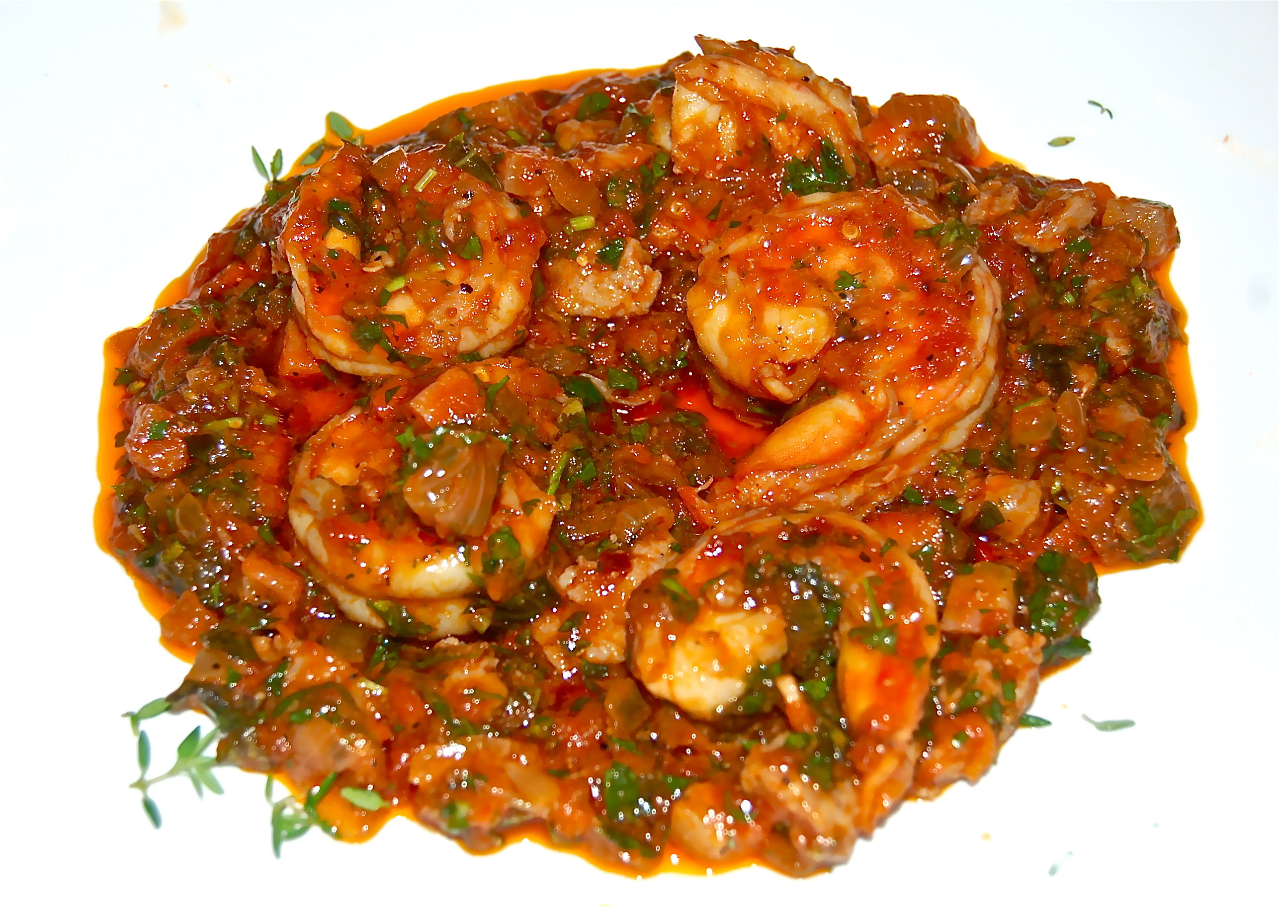 Serves 2 A CookTale Historically when I thought of a cooked Shrimp dish, invariably it was Shrimp Marinara. But last evening my creative instinct kicked in. Why not be blasphemous and consider adding slices of Sweet Italian Sausage and begin the conventional recipe cooking method with the addition of diced Guanciale? The result was a spicier version of the classic. To my Italian recipe classicists, Con le mie scuse. INGREDIENTS 1 Pound of shelled & deveined extra large (U-15) Shrimp METHOD 1. In a medium bowl, toss the Shrimp with 2 TB of the EVOO & the Red Pepper Flakes. Season with Salt & Black Pepper. Let stand for 20 minutes or refrigerate until ready to start cooking. 2. Heat a large skillet until very hot. Add the Guanciale, Onion & Garlic & cook over high heat until lightly browned & tender, about a total of 7 minutes. Transfer to a bowl. 3. Add a TB of EVOO to the hot pan & the sliced Sausage. They should be thoroughly cooked in about 7 minutes. Transfer to the bowl. 4. Add the remaining 2 TB of EVOO to the skillet along with the Shrimp & cook over high heat, stirring occasionally, until the Shrimp are firm & bright red, no more than 3 to 4 minutes. Return the Guanciale, Onion & Garlic & any accumulated juices to the skillet. 5. Add the Marinara Sauce to the mixture & simmer over moderate heat until everything is heated & cooked through, no more than 2 minutes. 6. Plate & garnish with the Parsley, Basil & Thyme. |
