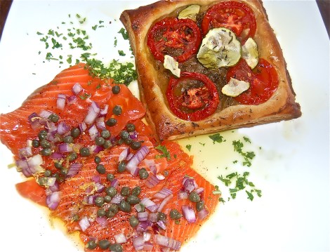 27/11/11 Wild Salmon Carpaccio With Puff Pastry Vegetable Tart
