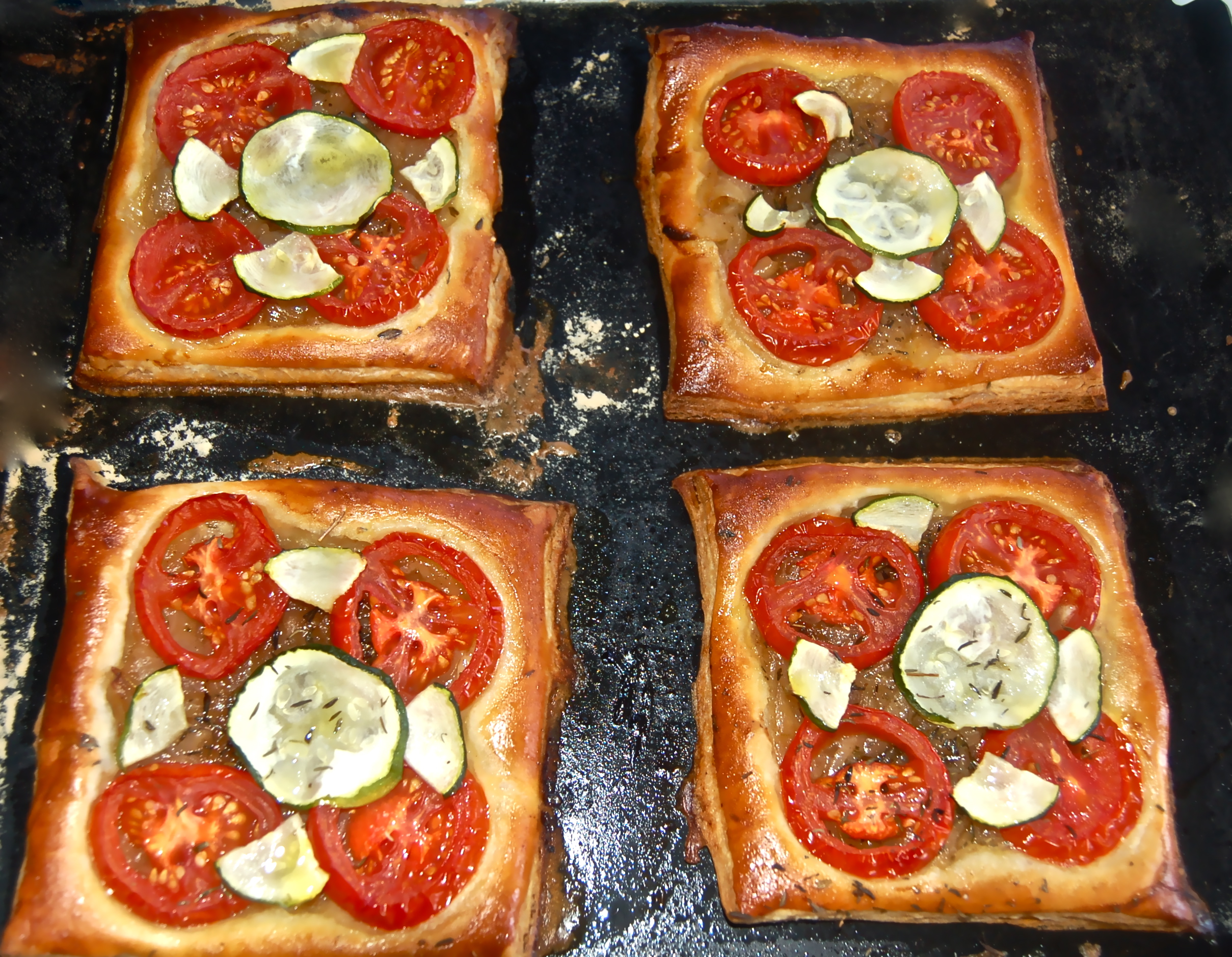 27/11/11 Puff Pastry Tarts With Melted Onions, Tomatoes and Zucchini & EVOO