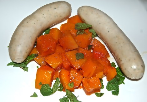 30/12/11 Weisswurst With Butternut Squash Glazed With Butter Maple Syrup
