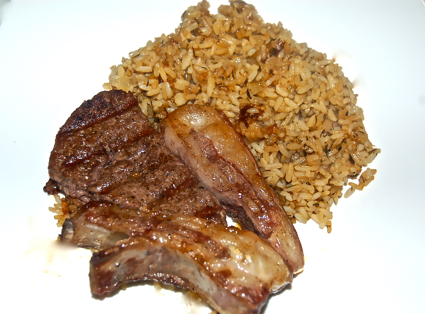 A CookTale With apologies to all “cooking for one” cooks. To me, cooking for one is like performing in an empty theater. This unattractive opinion is based on the fact that I’m spoiled. In 1977 when I started seriously hanging around our New York kitchen those mostly futile attempts were supported, guided and tolerated by Cathie who was and is an excellent Julia Child devoted cook. Those days and many thereafter produced dreadful results, but like all things new, it took trial and error, mostly error to get up and crawling. INGREDIENTS Thyme Infused Baked Rice 1 cup of long grain Rice METHOD 1. Heat the oven to 400 degrees. 2. Prepare the Rice according to the package directions. 3. Add the dried Thyme, Salt & Pepper & the dissolved Demi Glace stock. Gently mix it all together. 4. Butter an oven proof deep sided casserole dish. Add the Rice mixture & a pinch of Thyme on top, and dot with the TB of Butter. 5. Place the casserole on the upper level of the oven & bake until the surface begins to color. About 20 minutes. Turn on the broiler & broil for a few minutes. The Rice should take on a lightly broiled appearance. INGREDIENTS Lamb Breast Riblet with Ground Lamb 1 Lamb Breast Riblet with Ground Lamb (prepared by the butcher) METHOD 1. Heat the oven to 425degrees. 2. Heat a cast iron grill pan to high. 3. Season both sides of the Lamb with Salt, Pepper & EVOO. Place in the grill pan & sear for 2 minutes a side. Add the cup of Chicken Broth & move the pan & its contents to the oven & bake for no more than 12 minutes. The Riblet & the ground Lamb should not be overcooked or it will dry out. |