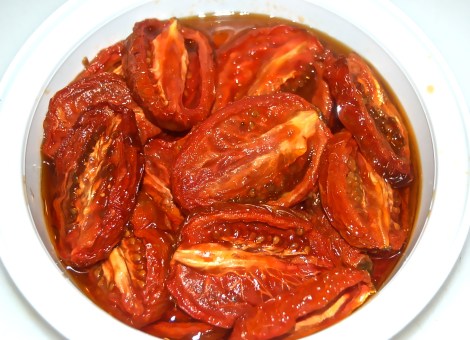 A CookTale Don’t take the lazy way out and buy “Sun Dried Tomatoes”. Chances are their not sun dried, but oven dried and over dried. So much easier to purchase a dozen firm ripe Roma Tomatoes, and dry them yourself. You can also control just how you prefer them. As seen in the photo, I prefer them still pliable with the richness of the oven drying evident with each bite. INGREDIENTS 12 or more Roma Tomatoes (halved) METHOD 1. Heat the oven to 325 degrees 2. Place the halved Tomatoes, cut side up on a non stick baking sheet. Evenly sprinkle with Salt & the 2 TB of EVOO. 3. Roast in the oven for at least 1 hour, check on their progress. If necessary continue to roast until they have reached the stage of dryness you prefer. 4. Allow them to cool & they’ll stay fresh in the fridge for a few weeks, but I doubt that they’ll last that long. |