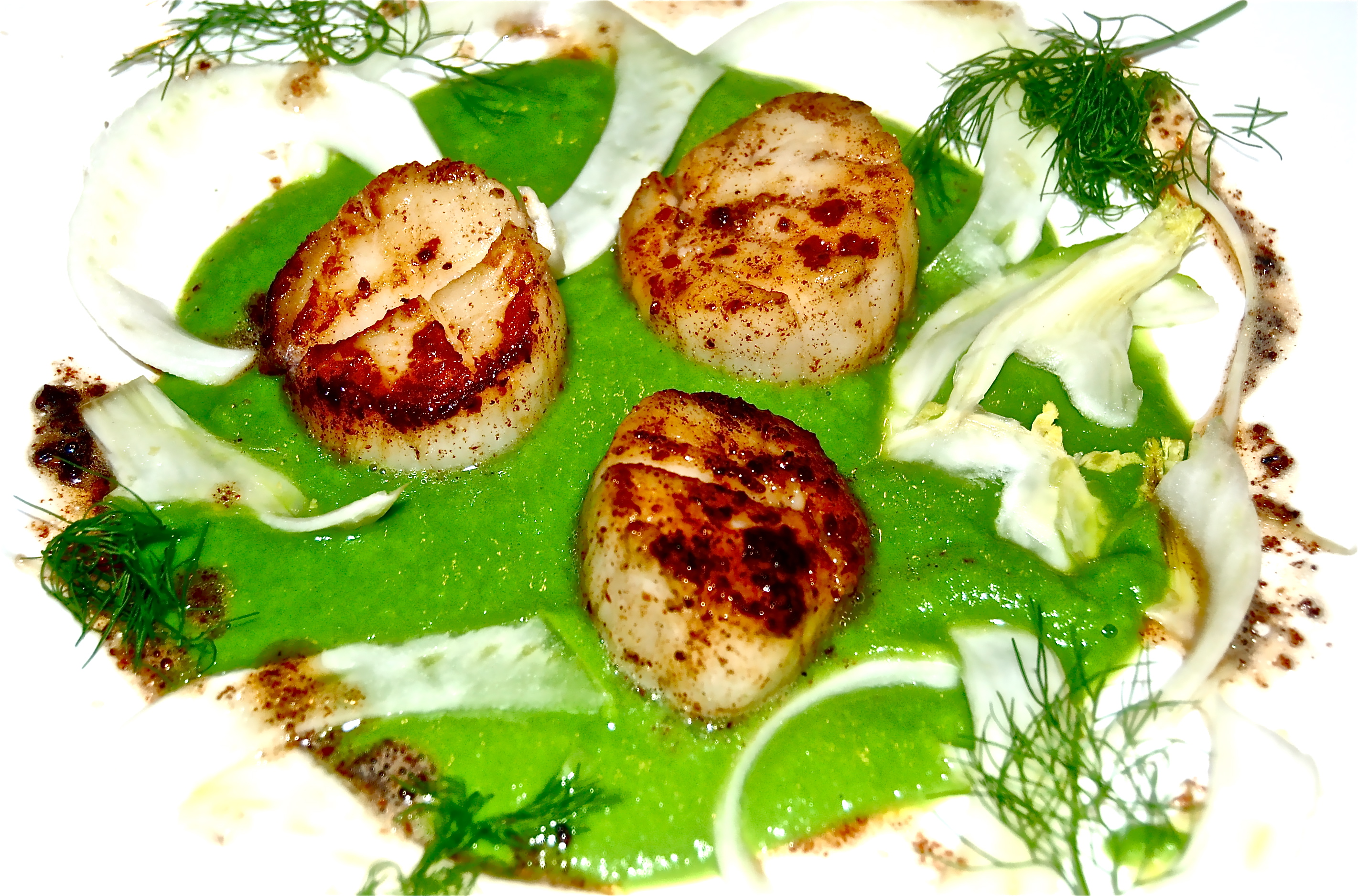 09/12/11 Diver Scallops On a Bed of Pea Puree with Thin Slices Of Fennel
