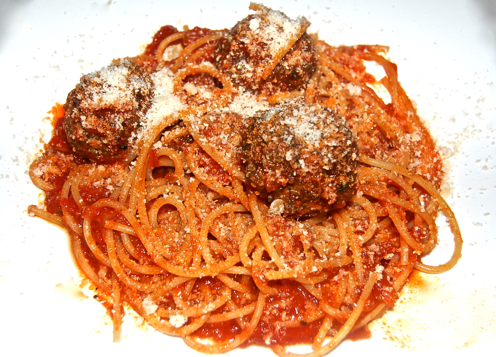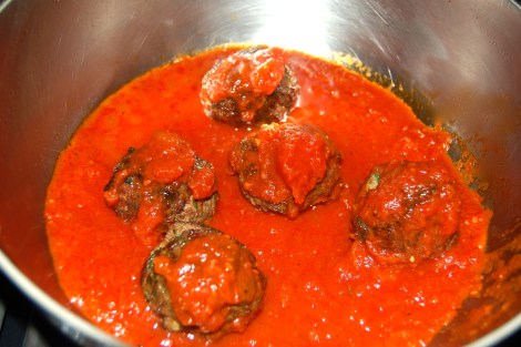 Serves 2 A CookTale Among the many good thing about being handy in the kitchen is the ability to satisfy one’s sudden urges. Monday I craved Asian Potstickers, last evening it was Italian Spaghetti and Meatballs. It’s still too early in the day to determine tonight. Fortunately, Cathie either goes along with my culinary whims or retreats into a plate of Broccoli. I love the fact that the food life is full of surprises. INGREDIENTS For the Meatballs 1 pound of ground Chuck & Sirloin Beef METHOD 1. In a large bowl, lightly mix all ingredients except the EVOO. Take a portion of meat in hand & form a ball that is firmly packed but not compressed. Repeat, making each Meatball no more than 2 inches in diameter & weighing 2 ounces. (I rely on a scale.) 2. In a large, heavy pot, heat the EVOO over medium-high heat. When it begins to shimmer, add meatballs. Do not crowd, cook in batches if necessary. Brown well on their bottoms before turning, or they might break apart. 3. Continue cooking until completely browned . As each batch is finished remove them to a plate . Allow the Meatballs to cool slightly. Keep them warm or refrigerate until needed. |