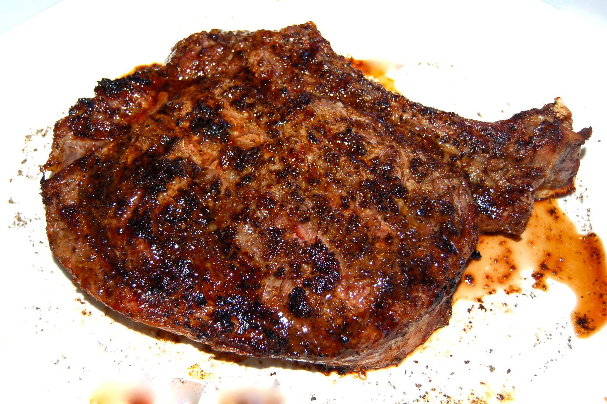 The difference between what is called a Rib Eye and a Cowboy Steak are a few inches of bone left on the latter. Ridiculous geographical colloquialism! Whatever it’s called, it’s a delicious cut of Beef. This beauty was grilled outdoors, being extra careful not to overcook.