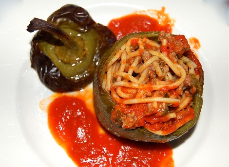 29/08/12 Roasted Bell Pepper Stuffed With Spaghetti, Ground Beef & Marinara Sauce