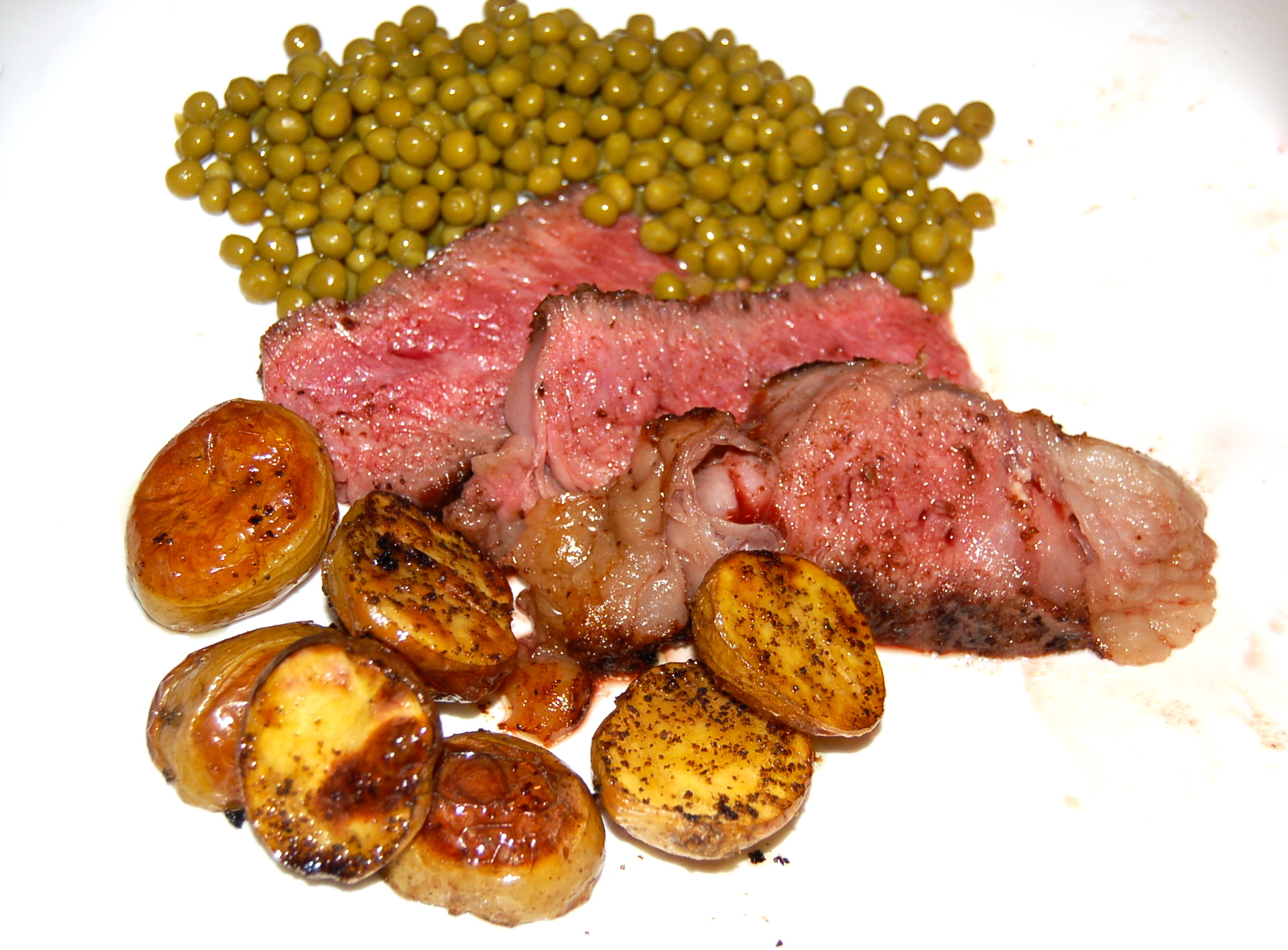 06/08/12 Rib Eye Steak With Roasted Yukon Gold Potatoes & Baby Sweet Peas.