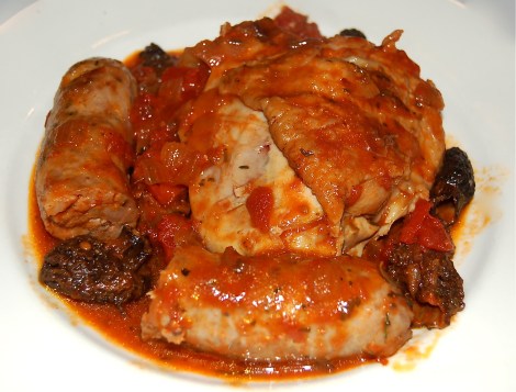 18/09/12 Chicken Thighs Hunter Style with Morels & Italian Sausages