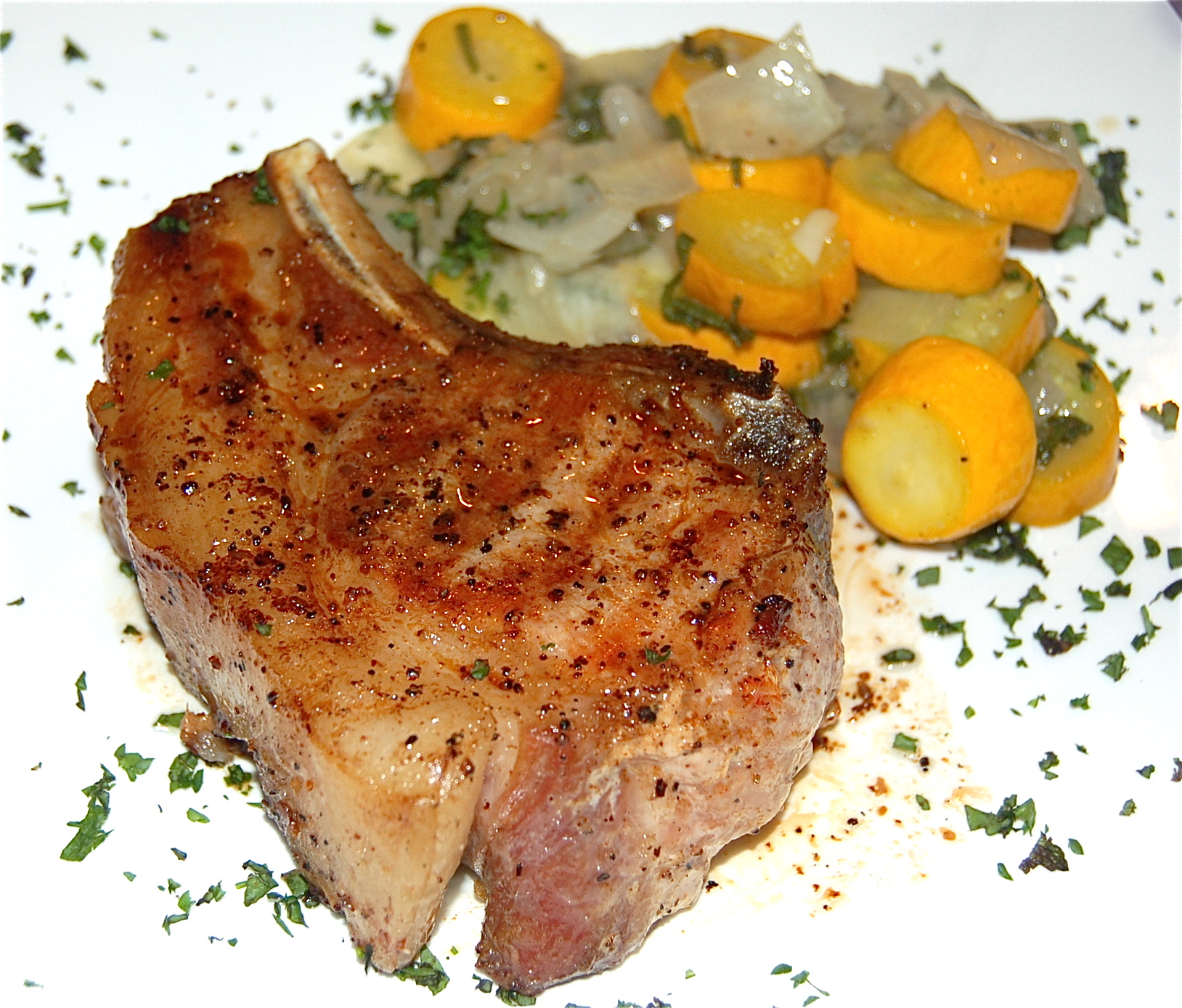 25/09/12 Double Pork Rib Chops, Double Their Flavor. An Improvised Yellow Squash and Onion Side.