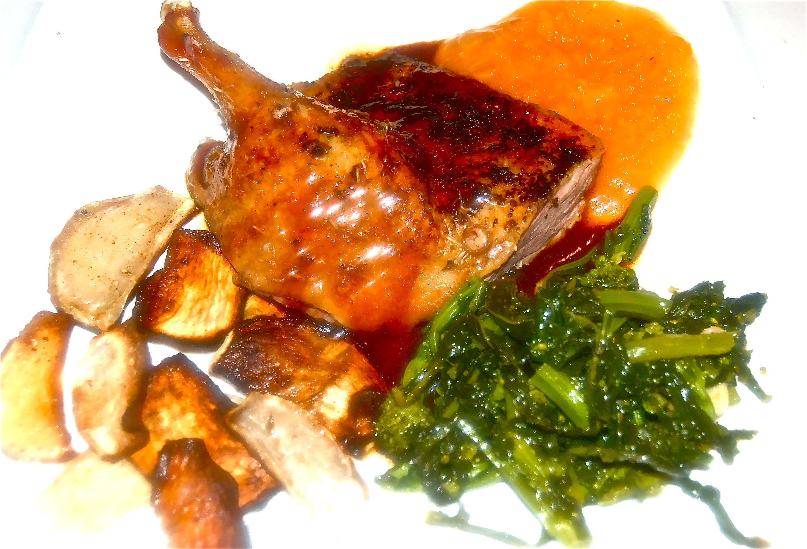 September 12, 2011 Roast Duck,Turnips Roasted in the Duck Fat, Sauteed Broccoli Rabe & Apple Peach Sauce