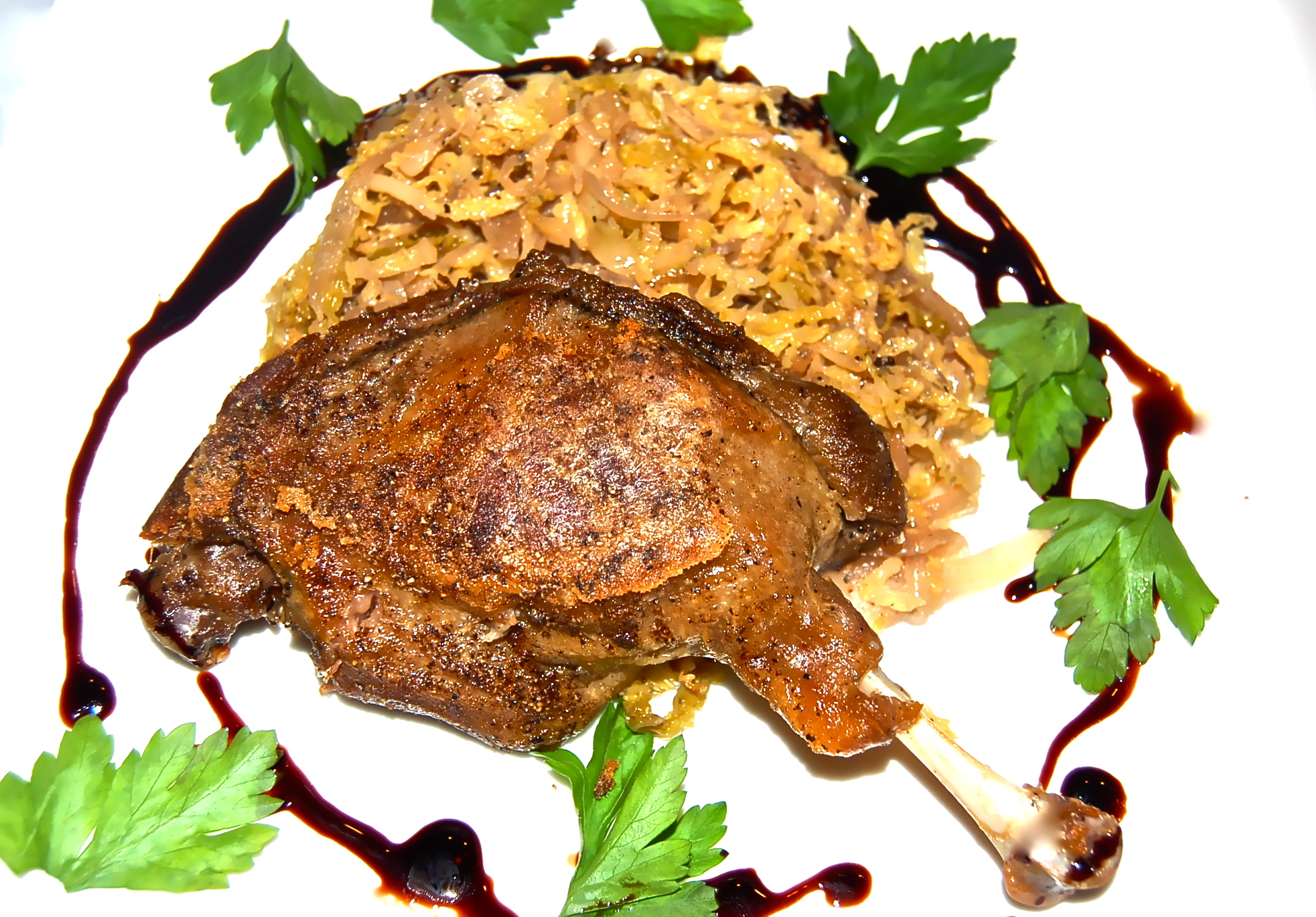 We purchase our Duck Confit legs fully prepared in a vacuum six-pack at our fine food market, Adams Fairacre Farm, in Kingston, NY. It not only saves a great deal of time & energy, but I’m certain that they are superior to what I could concoct from scratch.