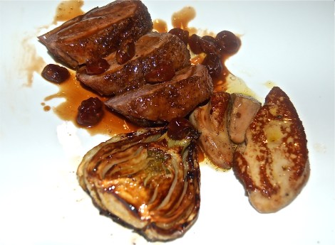 It was “a delectably divine dinner”. In no way an ordinary weeknight event. Three ingredients that created a complement of savory tastes. Duck Breast, Foie Gras, Fennel. The Cherry Port Red Wine Sauce added a smoothness that’s worked wonderfully with Duck. As Cathie likes to say “good enough for company”. And I’ll add “easy to prepare”.