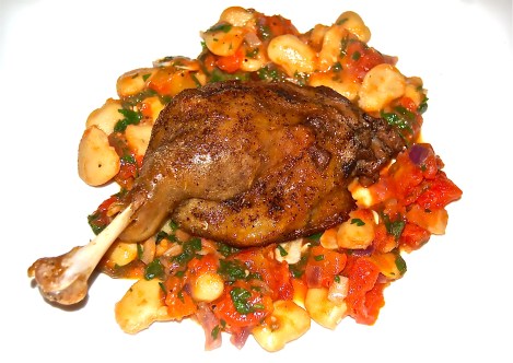 April 26, 2012 Duck Breast on a bed of Cannellini Beans with Tomatoes