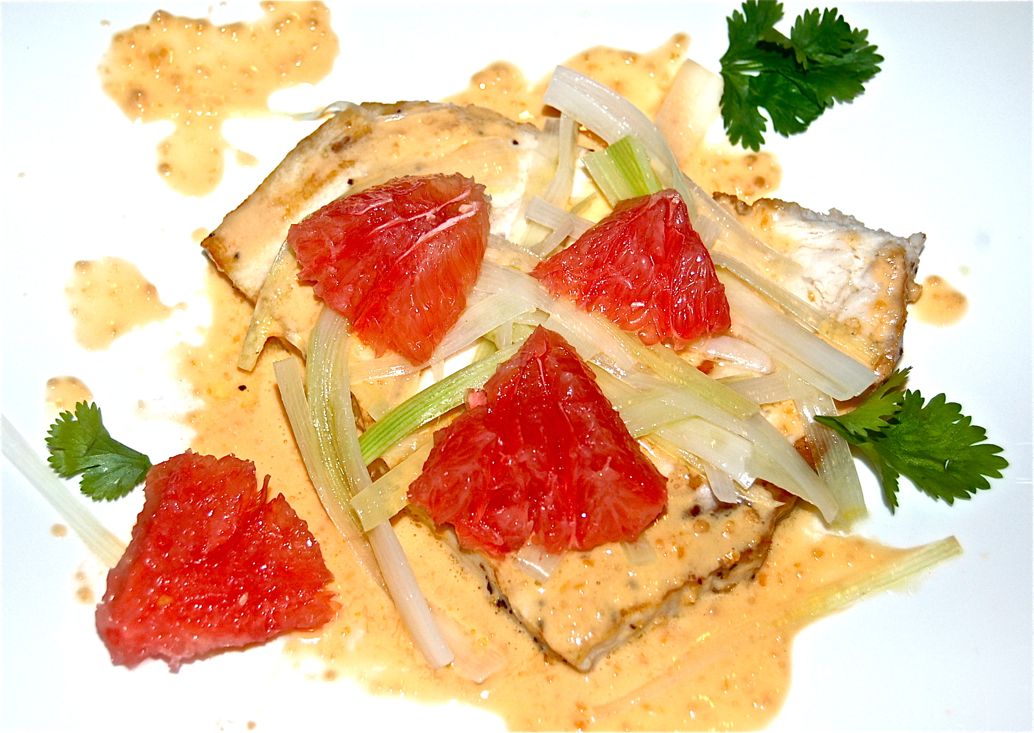 October 2, 2012 Swordfish Paillard With A Julienne of Leeks & Segments Of Pink Grapefruit