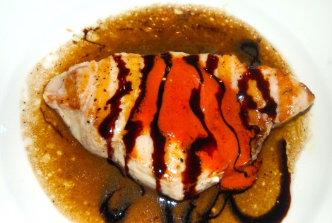 6. Plate & spoon the Balsamic/Butter sauce onto each plate & top with the Fillets. Add the Balsamic Glaze & serve.