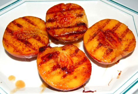 3. Lightly oil the grill. Brush the cut sides with the Balsamic Glaze. Place the Peaches on the grill, cut side down. Cook for about 5 minutes, or until the flesh is caramelized.