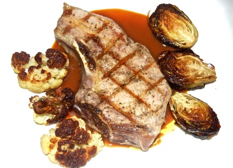 March 5, 2012 Rib Pork Chop With Roasted Cauliflower & Brussels