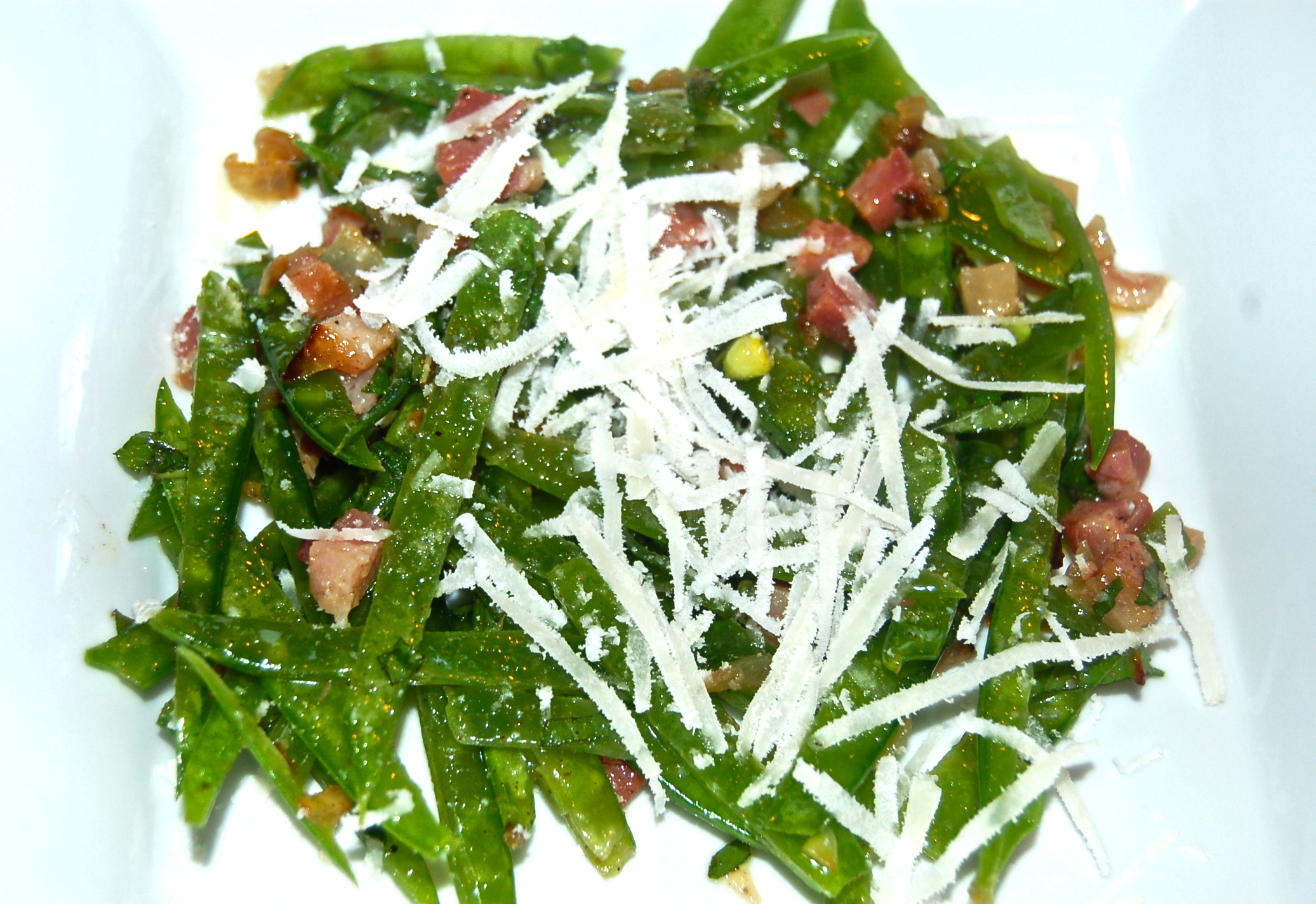 June 27, 2012 Snow Pea Salad With Pancetta, Onion & Pecorino Romana