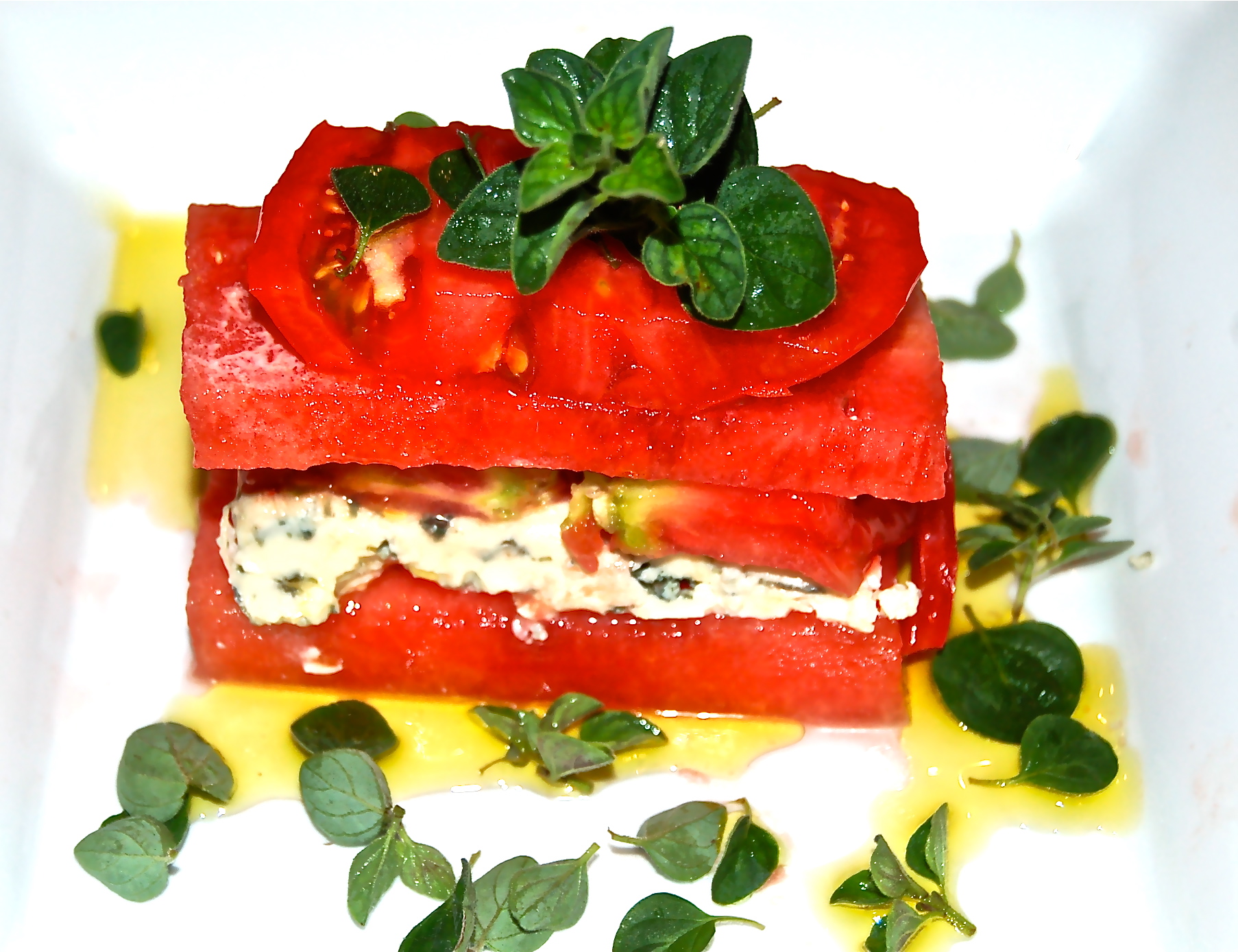 July 17, 2012 Watermelon, Tomato & Blue Cheese Salad With Oregano Leaves
