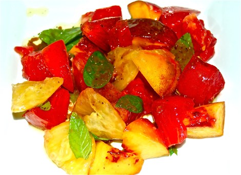 September 2, 2011 Peach and Tomato Salad with Mint and A Dijon Vinaigrette