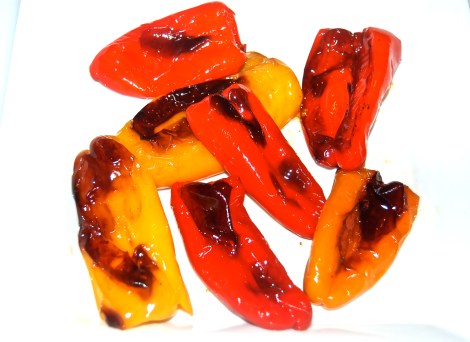 You never know what might turn up at the village supermarket! This week’s surprise came in a plastic bag in red, yellow, and orange. They were just asking to have someone do something with them. I might have disappointed them with a simple roasting, doused with EVOO, Salt and Pepper. If they only knew how tasty they were!