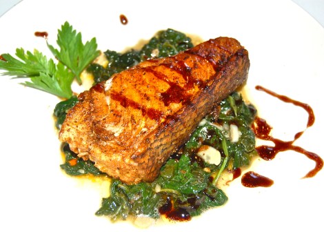 4. Spoon the delicious pan juices over & around the fish, remove from the pan & place on the bed of sauteed Spinach.